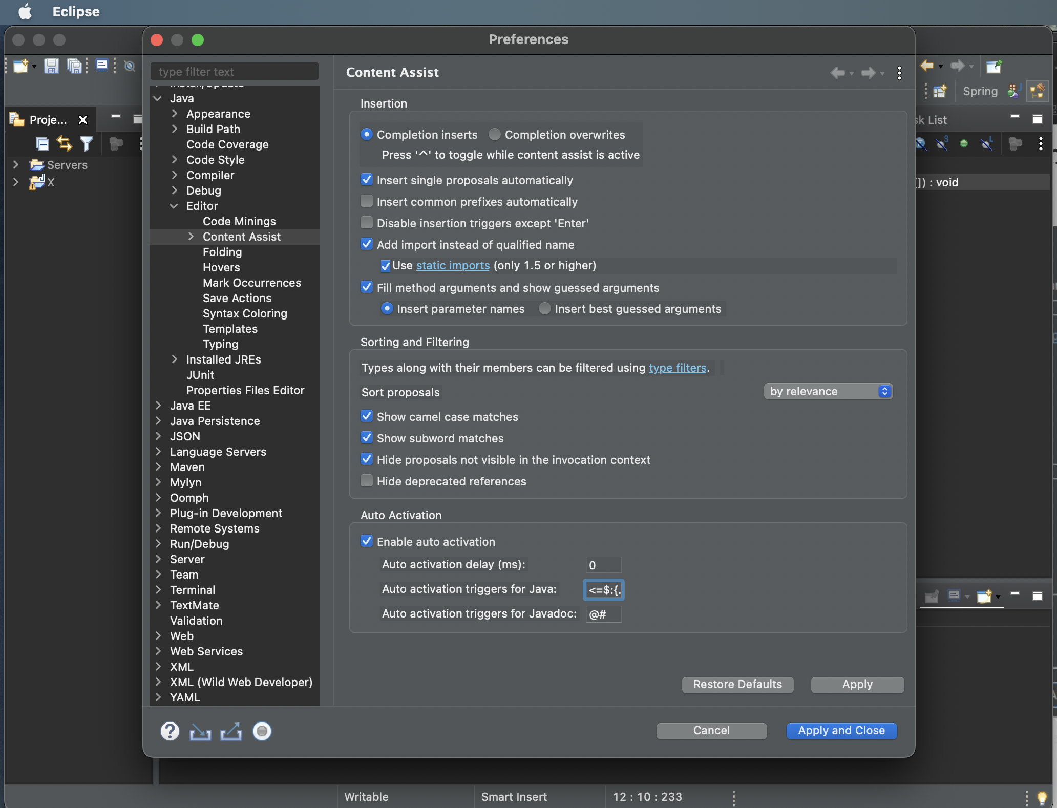 [Eclipse] 이클립스 코드 자동완성 설정하는 법(Content Assist)