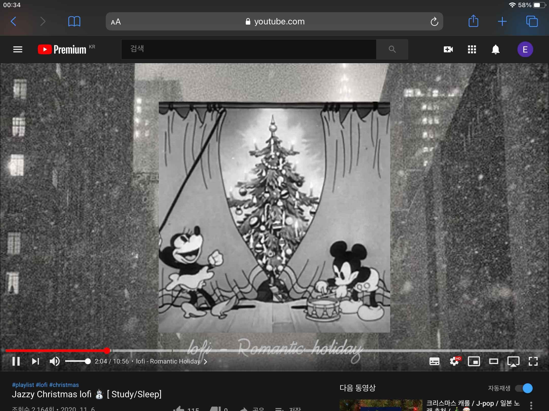 1. Safari 앱에서 유튜브로 들어가 듣고 싶은 음악을 튼다.