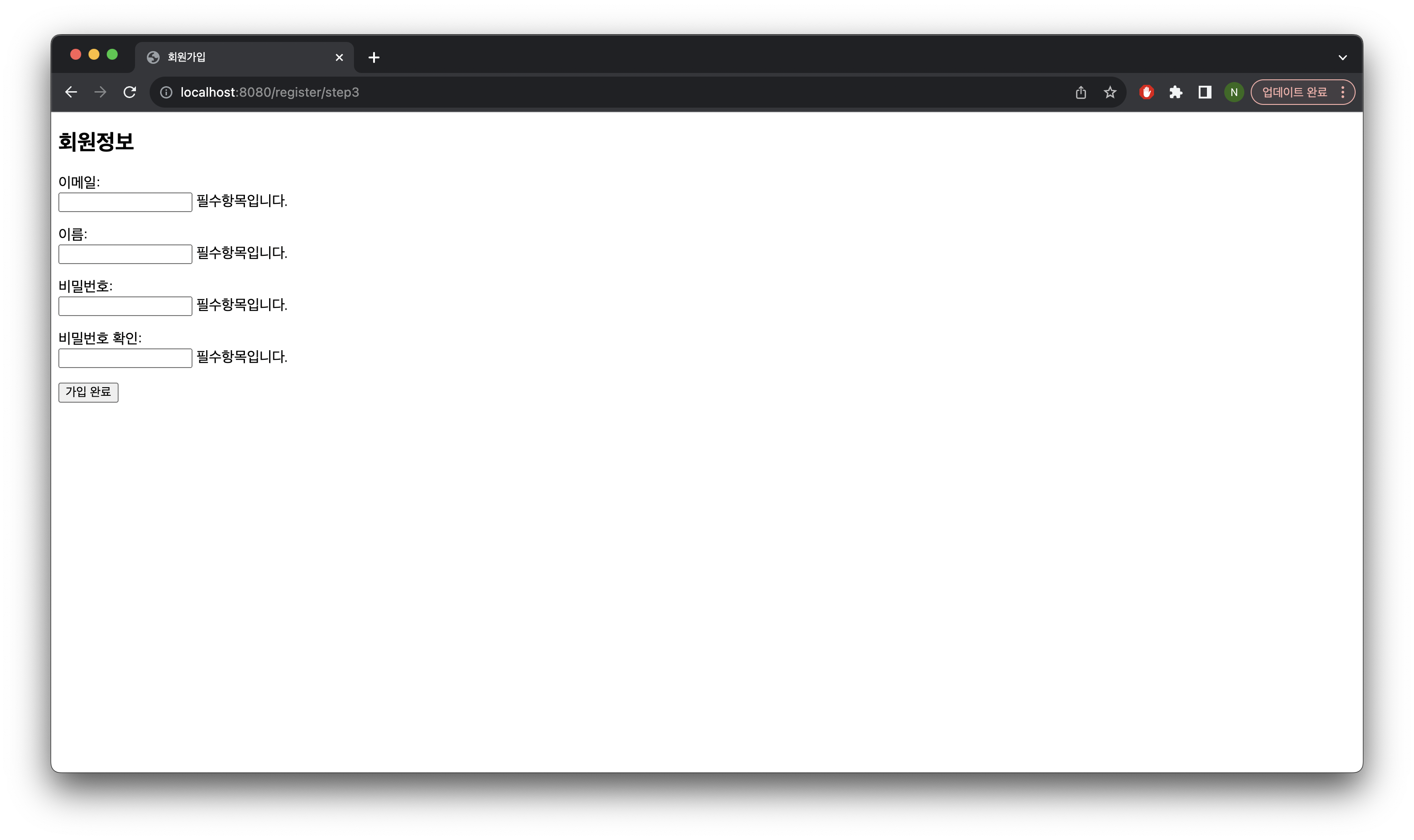 회원가입에서 사용했던 step1,2,3 페이지를 다음과 같이 수정하겠습니다.