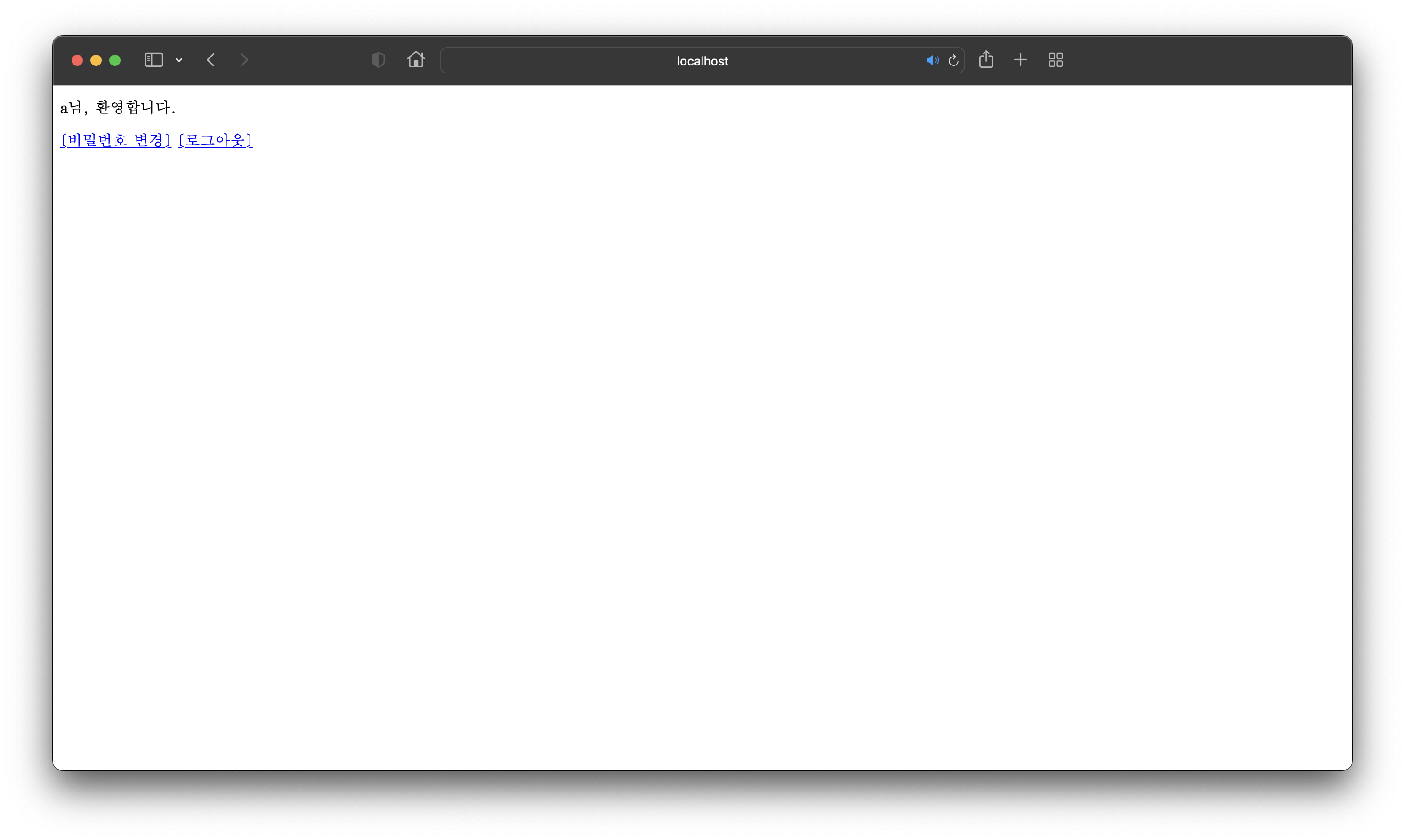 그러므로 authInfo가 true가 되기 때문에 아래의 if문이 실행되어 비밀번호 변경 / 로그아웃 문구가 출력됩니다.