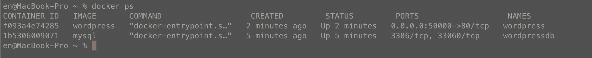 port 명령어를 통해 wordpress라는 이림의 컨테이너가 사용 중인 호스트의 포트를 출력할 수 있습니다.