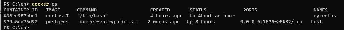ps: 컨테이너 목록 확인, 정지되지 않은 컨테이너만 출력.
