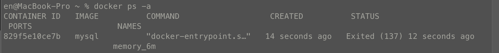 하지만 너무 메모리 할당량이 적어서 메모리 부족으로 인해 컨테이너가 실행되지 않았습니다.