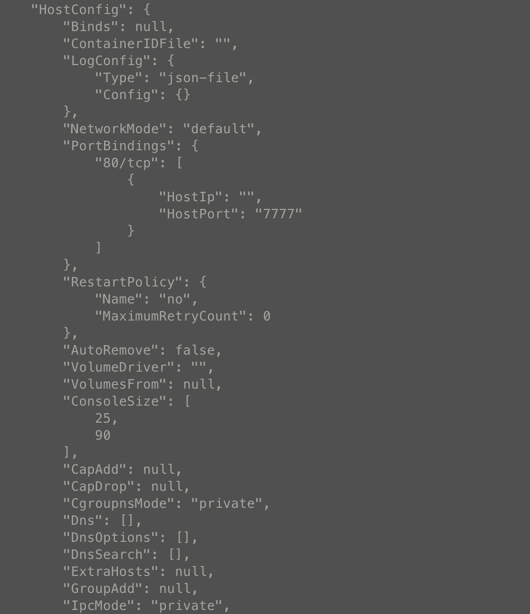 docker inspect 명령어를 입력하면 현재 컨테이너의 자원 제한을 확인할 수 있습니다.